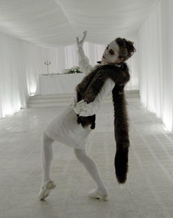 "FADING BLOOD" is a performance by Akis Demos, based on Konstantinos Christomanos's "The Wax Doll". The performance took place in a damp basement resembling the house of "The Wax Doll". Among twelve performances, it was included in the transnational project " Through the spectacle : Italian - Greek hypermedia file to a network " under the Interreg III A Greece -Italy 2000-2006 , where the Ionian Islands Region is a partner .